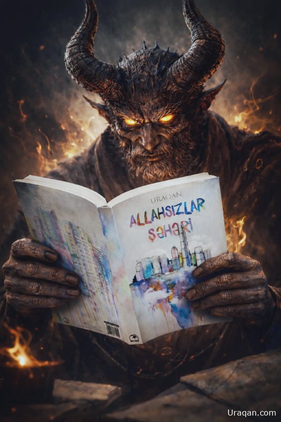 – Durmuşdum, amma Allah mənim qalib gələcəyimi görüb Nuh tufanını yolladı və hər şeyi sıfırladı. Yaratmış olduğu hər növdən də bir cüt saxladı ki, onları təkrar yaratmağa ehtiyac qalmasın. O gündən bəri bu bəhsi davam etdirmək istəmirəm, çünki bilirəm ki, yenə insanları yoldan çıxartsam, bu dəfə də qiyam günü bəhanəsi ilə hər növdən bir cüt saxlayacaq. Yəni ona qalib gəlmək mümkün deyil. Amma dünyanıza yenidən səfər edəndə baxıb gördüm ki, mən toxunmasam belə, insan heç də məndən geri qalmır. Əksinə, özünün etdiyi şeyləri də mənim üstümə yıxaraq birinin üstünə beşini də qoyur. Mən bu şəhərdə gördüyüm haqsızlıqlardan sonra sənə haqq qazandırdım ki, bu kütlə üçün məhz belə kitab, yəni “Allahsızlar şəhəri” yazılmalı idi. Amma daha dərin bir kütlə var, sən onlara çatmalısan. Bu dəfəki kitabı sənin yerinə mən yazacağam. Göstərəcəyəm ki, səndən daha yaxşı kitab yaza bilərəm. Özü də müəllif hüquqlarını da sənə verəcəyəm, mənə pul-zad lazım deyil, nə satsan, özünə qalar.