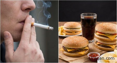 Bu şəkildə gördüyünüz kimi, tütün məmulatlarından istifadə və yüksək kalorili, işlənmiş qidalardan ibarət pəhriz xərçəngin inkişafına zəmin yaradan əsas həyat tərzi faktorlarıdır.