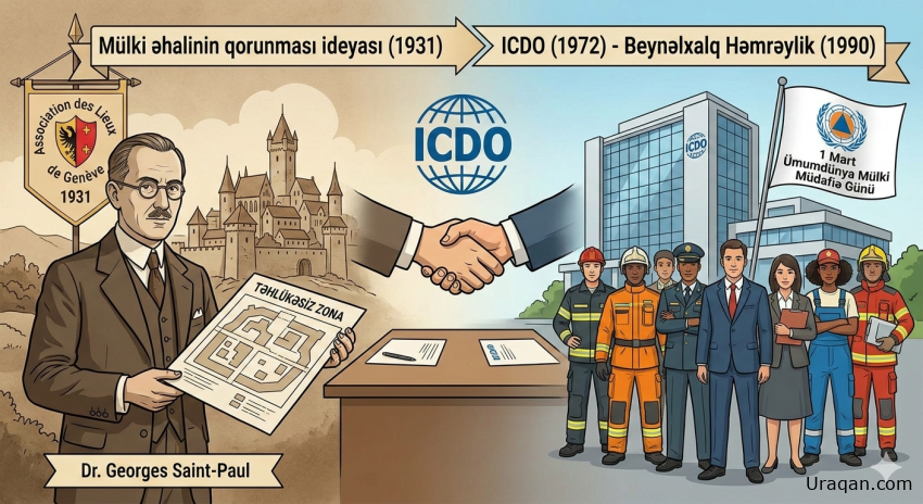 Daha sonra bu ideya beynəlxalq səviyyədə inkişaf etdirildi və 1972-ci ildə International Civil Defence Organization rəsmi olaraq yaradıldı. 1990-cı ildən etibarən isə 1 mart Ümumdünya Mülki Müdafiə Günü kimi qeyd olunmağa başladı.